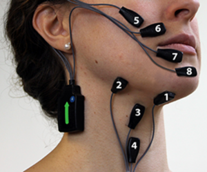 Unlike many of the current AAC devices, sEMG-based SSR presents a hands-free tool to allow users to communicate without the added physical reliance on their hands. The wireless nature of sEMG technology means sensors can be fitted to the specific articulatory muscles of interest, as shown in figure 1.