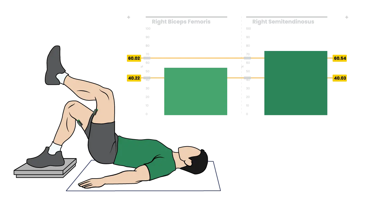 Athletes returning from lower limb injury can use EMG-driven biofeedback to identify and correct hamstring compensation patterns, helping restore balanced activation and reduce asymmetries during rehab and return-to-play progressions.