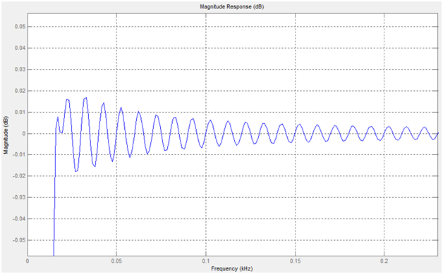 A zoomed in section of the magnitude response at the lower cutoff corner.