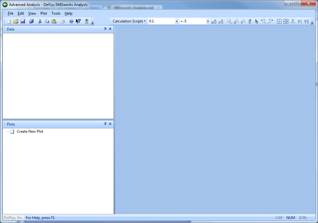 3. Click the OK button and the specified Workspace will be created and displayed in the program screen as portrayed below. The Workspace will contain no data or plots.