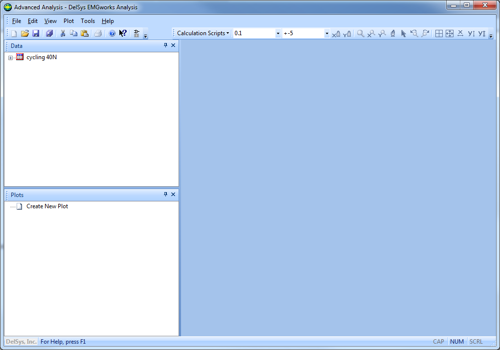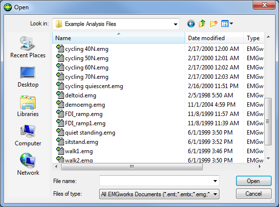 2. Choose the "cycling 40N.emg" file and click the OK button. The Data File will be added to the Workspace as portrayed below.