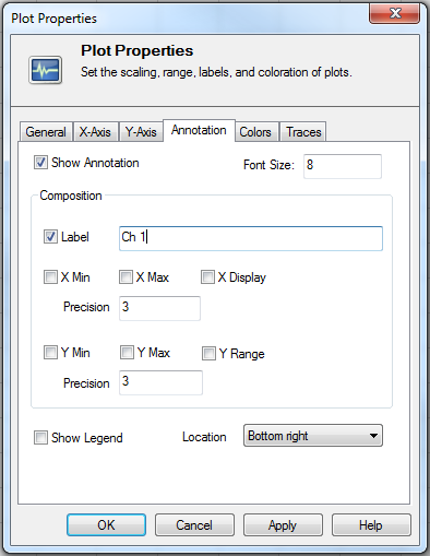The Annotation tab allows the user to specify preferences for the appearance of the Annotation in the upper left hand corner of the selected Subplot.