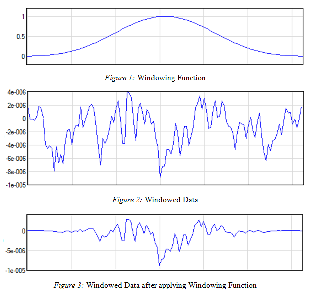 In the script, the calculation is performed by first creating the windowing function by calling the function makeWindow(type, length), using user specified parameter Window Type, as type, and user specified parameter Window Length, as length. The script then iterates through the data using windows. Each window is pair-wise multiplied with the windowing function. This step is illustrated in the diagram below: